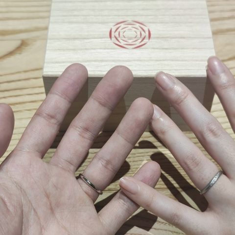 シンプルで着け心地が良い素敵な指輪です。 デザインも形からダイヤの色、配置まで丁寧に話をして決定したので、自分好みで世界に一つだけの指輪ができました。夫婦それぞれの好みやこだわりをそれぞれ盛り込みながら、ペア感もしっかりと表現できて、2人とも大満足の指輪になりました。