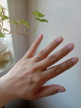 シンプルかつ個性も感じるデザインだと感じました。主張しすぎず、日々の生活の中にも溶け込むことができると思います。指が細いので、リングの太さやデザインといったところで、二人に合ったものを見つけることができたと感じています。