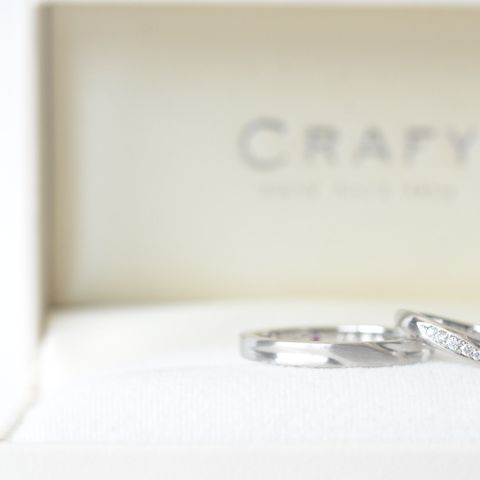 結婚指輪と婚約指輪の重ね付けが可愛くてシンプルなデザインがよかったです。男性用の結婚指輪も他にないデザインでとてもおしゃれだと思います。種類が多くて迷ったけど1番理想の指輪を見つけられて良かったです。