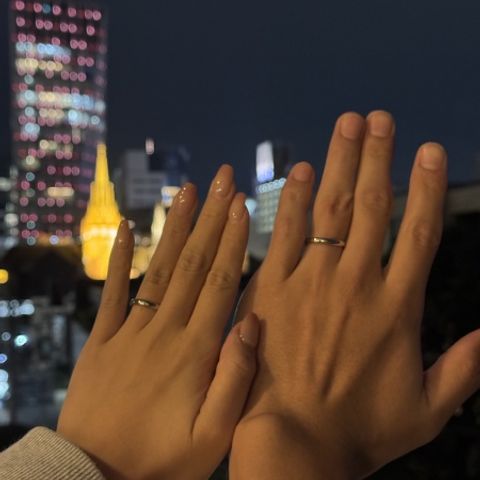 シンプルで主張しすぎず控えめなデザインだが、手作り特有の不規則な形と肌馴染みの良いピンクゴールドで手元が華やかになる。自分たちで相手の為に作りあった想いのこもった素敵な指輪。今後の2人の人生に欠かせないアイテムの一つになった。