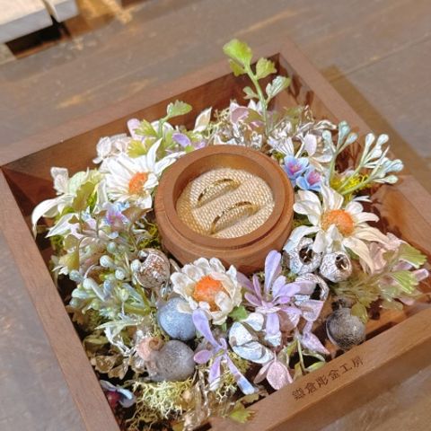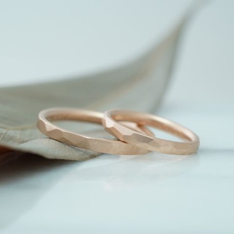 シンプルな指輪にミンサー柄をお互いの指輪に入れてもらい、ふたつ合わせると柄が完成するようにしてもらいました。太くもなく指に馴染みやすい大きさでした。色も派手すぎずとても可愛いピンクゴールドになりました。