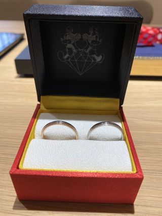 ディズニーが可愛くて、着け心地もよく、違和感がない。 ちょっと太めなのもオシャレで可愛い! 二人でお揃いのペアっていうのがいい。お互いの誕生石をいれれたのが最高だった!イニシャルと籍を入れた日付を彫ってもらったから世界に一つだけ!って感じかしていい!