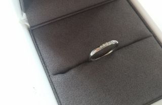 ダイヤがたくさんついていて、4点留めになっているのでダイヤのそこまで輝きが見えてとても綺麗です。結婚指輪との重ね付けが隙間なくぴったりと重なってとても素敵な指輪です。ちょっとねじってあるデザインもお洒落です。