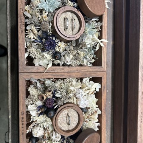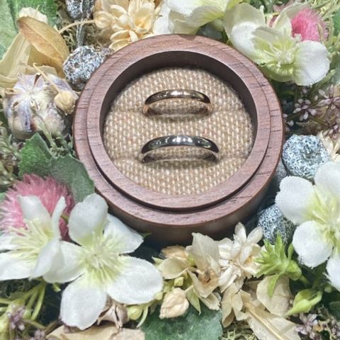 自分たち好みのリングを作成することができました。それぞれ気に入った色の金属でリングを作成してもらい、一部お互いの色の金属を入れました。リングの内側には2人で書いたお花のデザインを入れています。大変満足です