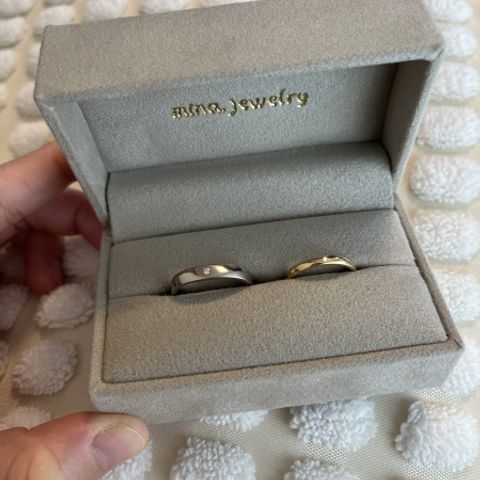 今回10周年の記念で新たに指輪を購入しようと思い、いろいろ検討していたのですが、せっかくならオーダーメイドで作りたいという想いからCayofさんに辿り着きました。 事前にInstagramでデザインをいろいろ見て行きましたが、実際に店舗に行くと時にたくさんサンプルがありどれも魅力的で迷いました。予算については事前にきちんと確認してくれたので安心してお願いすることができました。 2人の好みや似合うものが異なったため、色味のみ統一となりましたがそれぞれが満足のいくデザインの指輪を作ることができました。