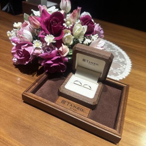 もともとデザインのイメージがありTANZOさんを選びました。お目当てのデザインは実物で見るとかなり華やかだったため別のデザインも見せていただき、その中で気に入ったものがあったため決めました。色や加工の種類など、セミオーダーの形で変えていただいてとても気に入っています。