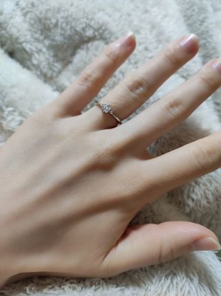 デザインもそうですが、本当につけたい指輪と気に入っています。着け心地も良くまさに理想の指輪な出会えました。ブランドの物がいいと思っていましたが、同じ値段でそれ以上の輝きの指輪を購入できてとても大満足です。
