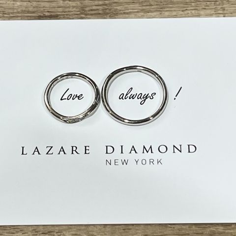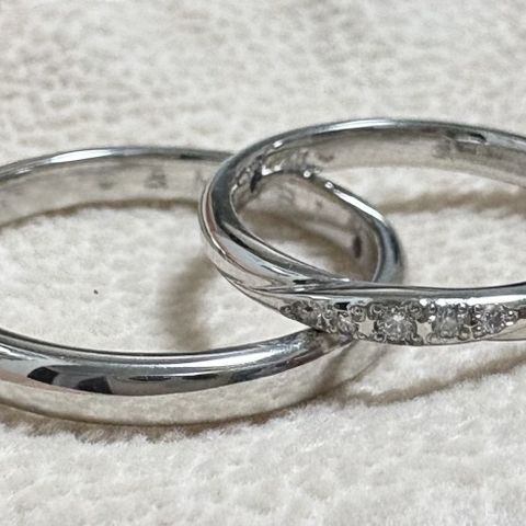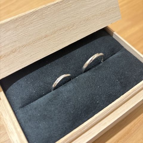 抜群の着け心地とシンプルながら華やかなデザインで、二人で一生つけていたいと思えるペアリングでした。完成後も見た瞬間ときめきました。アフターサービスも充実しており、一生安心して身に着けられる指輪だと思いました。