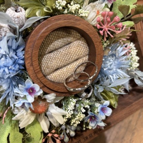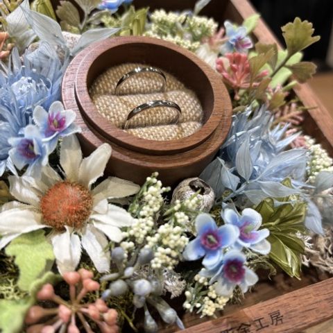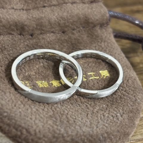 ふたりで記念に残せると思い手作り結婚指輪にしました!! プラチナ素材のクリア仕上げにしました!!! 一本の棒から自分たちで叩いてリングの丸い形にして 完成後は感動して涙が出そうになりました笑笑 大切に使いたいと思います。