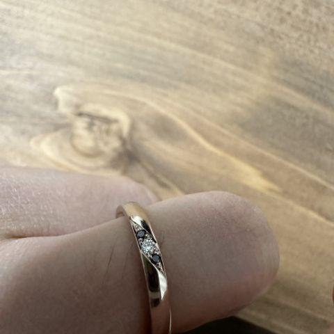 S字の指輪で探していました。ダイヤは7石と5石で悩みましたが、よりキラキラしている7石にしました。スターダスト加工を下の側面につけることで、普段は自分からキラキラが見えます。お休みのときは側面を上にして他の人からもキラキラ見せることが出来ます。