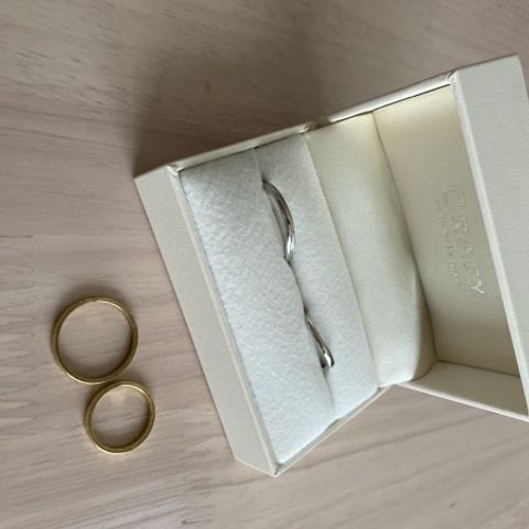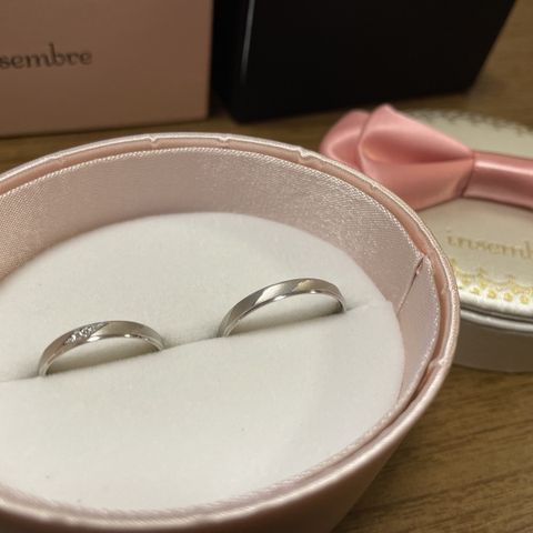 素材はたくさん悩んでそれぞれ好きな素材にするかなど悩みましたが、長い目で見てプラチナにしました。 デザインはずっとつけていられてシンプルなものにしました。素材やデザインなどはすごく時間をかけて考えたのでよかったです。