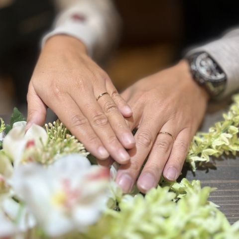 デザイン、色、形、自分たちで選んで、1から自分たちで作り、世界に一つだけの指輪がつくれてとても満足しています。お互いの指輪を制作させていただき、旦那さんが作ってくれた指輪をつけられることがすごくうれしいです。とてもいい思い出になりました。