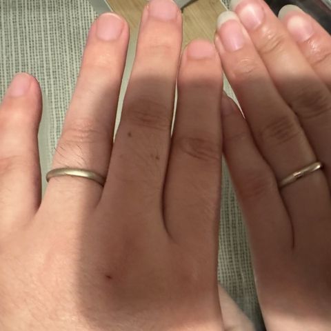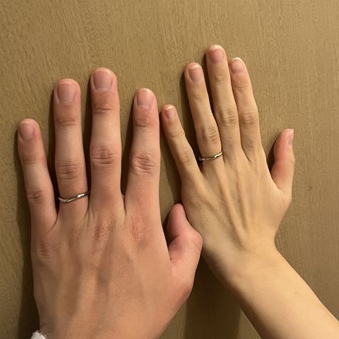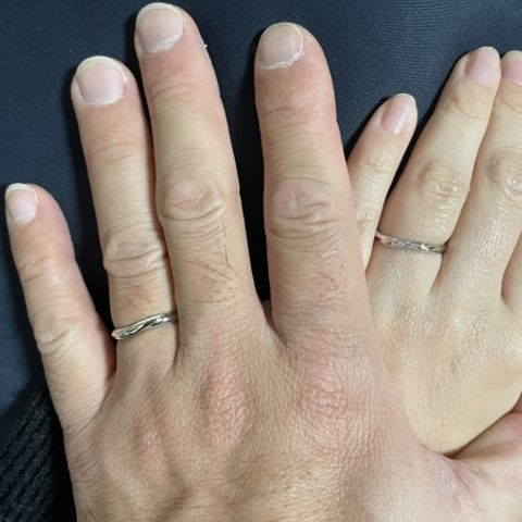 シンプルなデザインを希望していたので、理想通りの仕上がりになりました。 オプションで形を変えたり石を入れたりできるので、自分たちオリジナルの指輪が作れるのが良いと思います。 この価格でここまでの仕上がりになると思っていなかったのでとても満足しています。