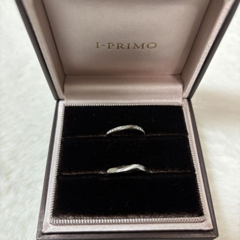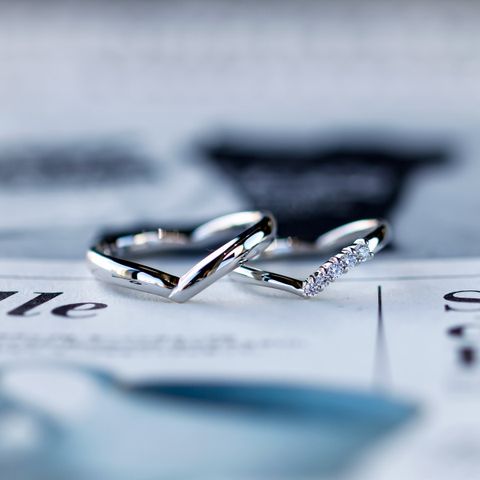 2人で話し合い、なるべくおそろい感が出るようにカットやデザインを寄せました。私の方だけダイヤを1つ入れて華やかにしたところと、V字にして指を細く見えるようにオーダーしました。手につけてみると輝きが増して感じ、とても満足がいく指輪になりました。