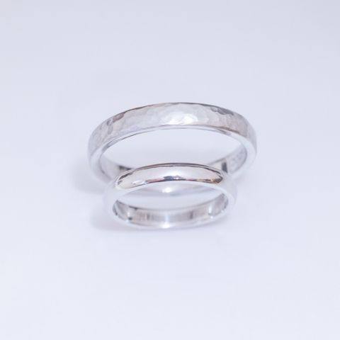 シンプルなデザインがにしたかったので、夫のリングは平打ち、妻のリングは甲丸つちめ加工にしました。素材はプラチナを使用し、価格も良心的でコスパ最高です。さらに、無料で刻印サービスを提供していただきました。シンプルでありながら、私たちらしさも表現できる指輪に仕上がり、大変満足しています。