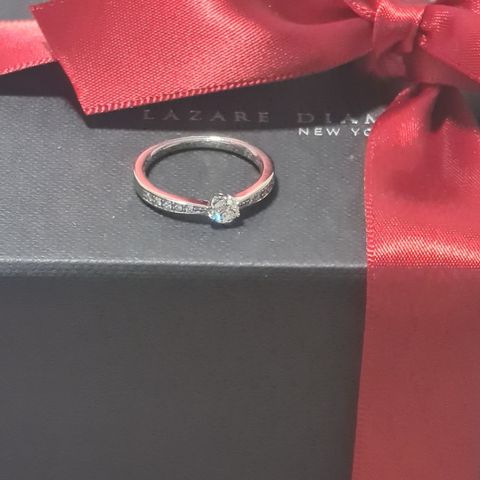 シンプルなデザインで着け心地も良く 使い勝手も良い!! 大きなダイヤモンドを付けなかったため場所を選ばずにつけることができる点がとても良いと思った また、中にブルーサファイヤを入れたことでより特別感を演出できたと感じた