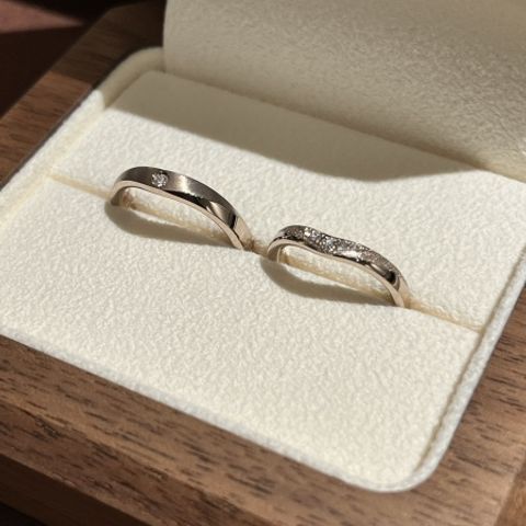他の人と被らないデザインがよかったので、ピンクゴールドとプラチナのコンビネーションにしました。細い指に合うウェーブを選びました。着け心地も良く、可愛いデザインでお気に入りです。自分好みの指輪があって良かったです。