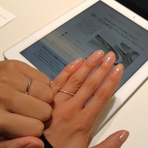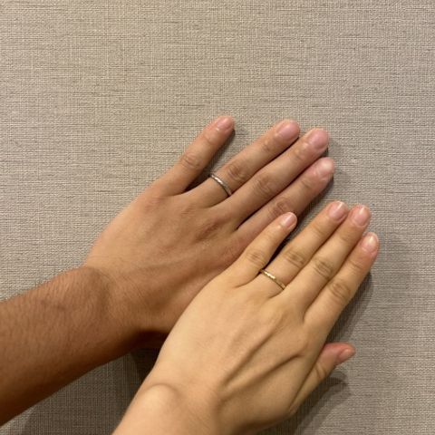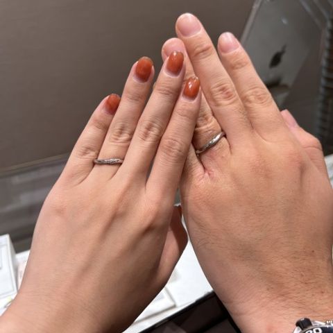 色々なデザインを見ながら、自分たちが良いと思うデザインの指輪ができて大変満足しています!結婚指輪と同じブランドで作ることができ、2人でデザインについて決めることができよかったです。また入籍指輪を作成したことで、サイズ感を十分確認することができました。