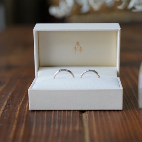 指輪のデザインに関しては自分達で気に入ったものがあったため、そのデザインをベースにお店の方へ相談しました。素材はおすすめしてもらったプラチナの95%を選択。価格は2人で約13万ほどで他ブランドで見積もりをいただいた手作りの指輪の半額程度で作製することができ、価格、実際に完成した指輪ともにとても気に入っています。