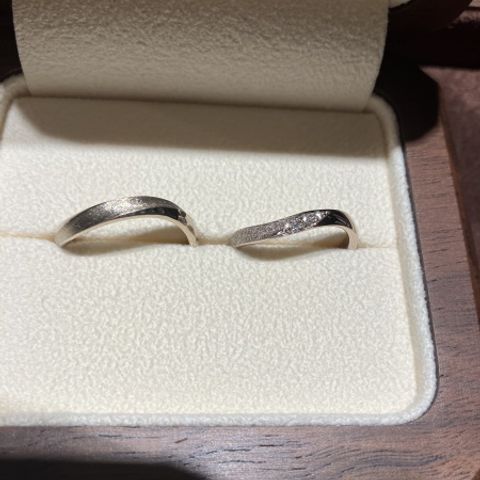 私たちが決めた結婚指輪の基準は、重ね付けができて指が綺麗にみえたらいいなが理想でした! 自分の指にあった形を提案してもらい2つの指輪の意味もしっかりあるものをえらびました。 男性の方にもダイヤがついていて可愛いです