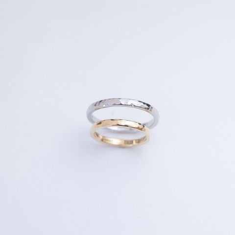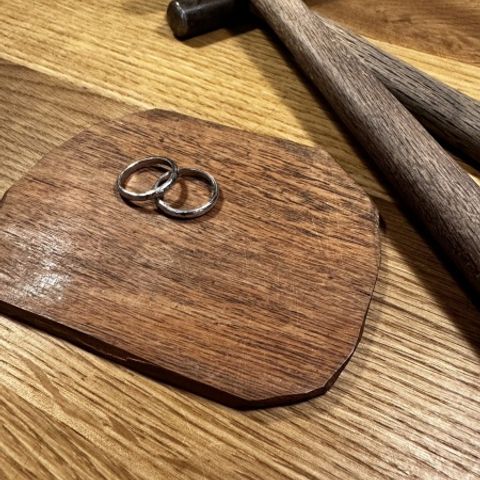 槌目のデザインに一目惚れしました!シンプルなデザインを希望していたため、店主にも相談してダイヤのないものに決めました。ツヤありとツヤなしを実際に比較させていただき、ツヤありで製作していただきました。槌目の模様が光っていてとても綺麗です!