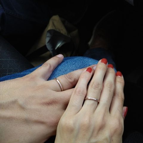 指輪の形状が手を取って歩いて行くという、意味のあるデザイン性がとても素敵だと感じました。シンプルながらもしっかりとした意味のある指輪で、今後ともずっと付けて夫婦でこの先を歩んで行きたいなと思いました。