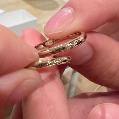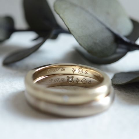 2人だけの指輪がよかったので、内側に重ねると絵になる刻印を入れました。完成後に中を見てくっついたのをみると自分たちだけの指輪という感じで嬉しかったです!中のイニシャルなど刻印も様々なフォントから選ぶことができました!