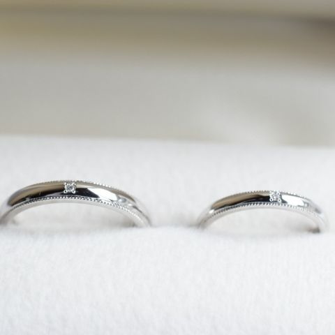 プラチナで指輪を作成しましたが、2人で仕上げ方を変えたことで特別感がでました。実際に試着する中で自分に合った仕上げを探すことができました。指輪の内側には記念日の刻印もでき、2人だけの特別な指輪を作成できました。