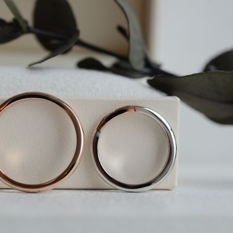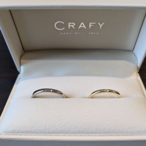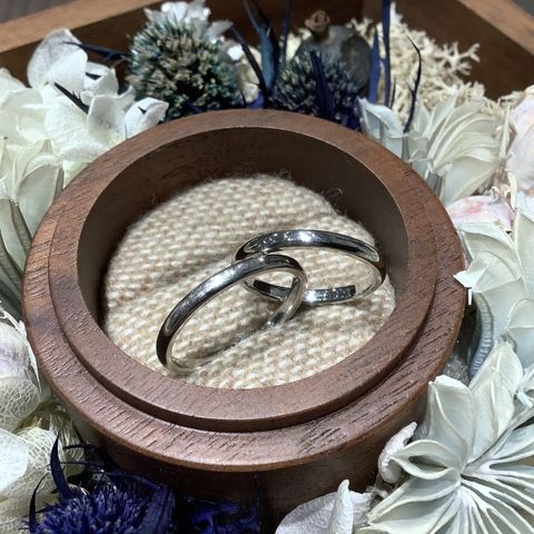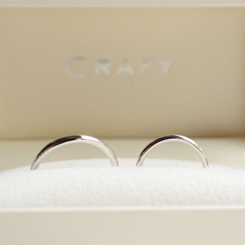 同じ素材でありつつも、女性らしい甲丸と男性らしい平打とお互い似合うデザインにして、仕上げは王道のクリア仕上げにしました。ブランドやハンドメイドのものとと比べ、コストパフォーマンスも想像以上によかったです。