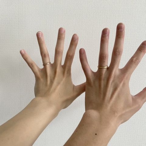 毎日身につけたかったので、つけ心地が良いものが良かったのですが、実際に付けてみるとすごくフィット感があり印象的でした。 また、妻はカジュアルやキレイめ、旦那は古着をよく着るのですが、さまざまな服装でも違和感のないものが良く、シンプルさもありつつ、U型がオシャレなこの指輪を選びました。
