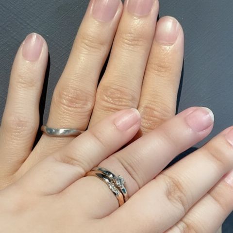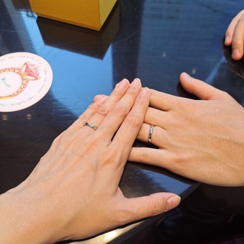 素敵なデザインでシンプルなものがいいなという話をしていました。マット加工があるものがいいと相談させていただき、今回のような指輪のデザインを選びました。ひとつひとつ手作りという点もお気に入りの一つです。ありがとうございました。