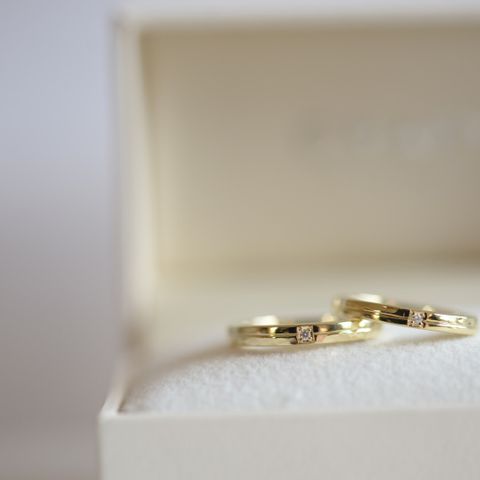 婚約指輪を決める際、2人の硬い絆を象徴トゥーアズワンダイヤについて教えてもらい、結婚指輪で絶対取り入れたいと思い、2人ともダイヤを入れました。また、思い出も作りたかったので手作りのプランにしてもらい、店舗内にある工房で職人さんと和気あいあいとしながら製作できたので、より思い入れの強い指輪ができて大満足です!