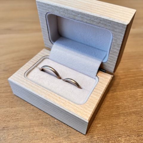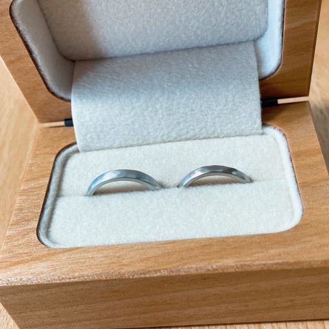 シンプルで着け心地がよく 有名ブランドのものではないですが、 2人で作った思い出もあり愛着があります。 見た目はシンプルだけなように見えますが、 裏側にはイニシャルや結婚記念日を彫っていただいており、小さな傷も手作りならではの良さに思えます。