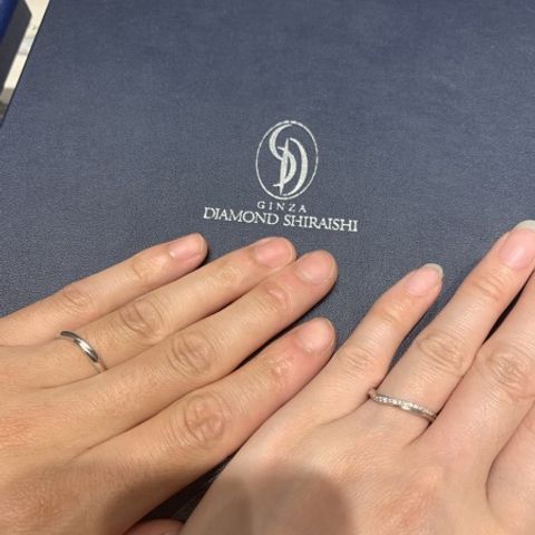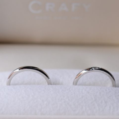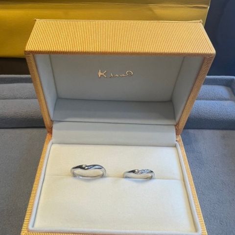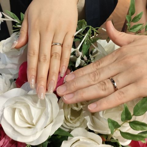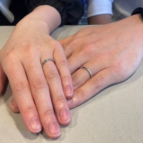 とにかくシンプルなものを求めていたので、私たちにピッタリでした。素材やデザインも自分たちでゆっくり選ぶことができました。内側への刻印は無料でしていただけて、刻印の様子も間近で見ることができました。ダイヤなどを入れる加工をしなかったので、即日持ち帰れたのも嬉しかったです。