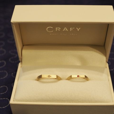自分達で一からの制作で世界に一つだけの指輪に大変満足してます。結婚式をやらない私達なので一生着ける指輪は思い出になる物が欲しいなと思い、鎌倉彫金工房さんのホームページを見て決めました。2人とも大変満足しています。