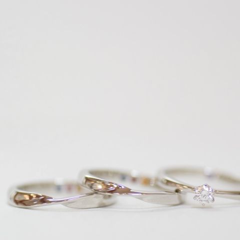 指輪の種類はいろいろありましたが、今回選んだ指輪はどれもシンプルで派手すぎず、値段も控えめで素晴らしい指輪です。 また婚約指輪は、石があっても控えめでありつつ、存在感を損なわない素敵な指輪になりました。