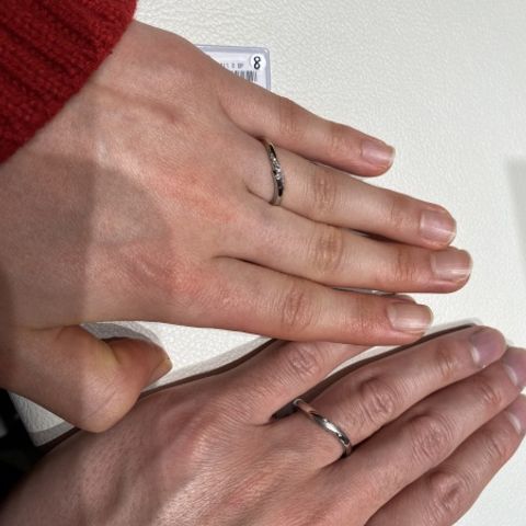 初は何も考えず相談に伺いましたが、お店にあるサンプルを実際に試着しながら自分の好みのデザイン、材質のものを見つけることができました。 自分好みに模様をつけたり、2人で一生の指輪を作るという 大きな思い出になってよかったです。