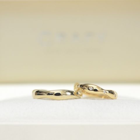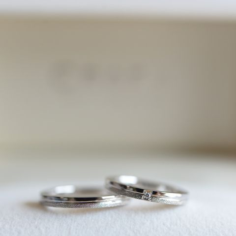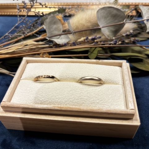 つるんとツヤツヤした指輪ではなくアンティークっぽくも品のある感じをイメージしていました。 色も揃えるのではなくあえて自分たちの肌色、指の形に合うリングの色を選びました。 仕上げのコーティング加工は2人で同じものを選びそれぞれ大満足な仕上がりになりました。