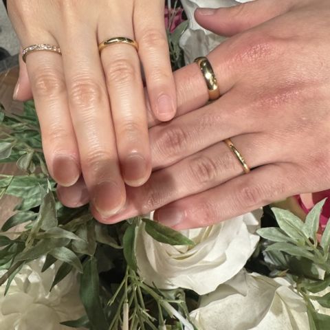 お互いがお互いの指輪を作ることで思い出に残る結婚指輪になりました。 毎日普段着けしたかったのでシンプルなものがよく、見本をいくつも見せてもらいながらアドバイスも受けてどのようなものを作成するか決めました。