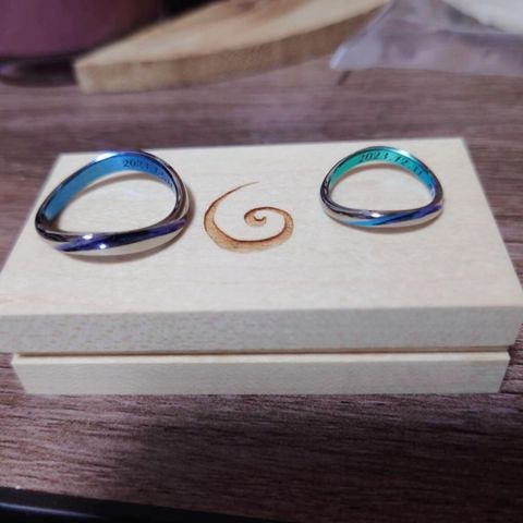 てらおかなつみさんの刻印を入れることができるという点で、uchimariさんにお願いすることは決めていたので、ファンの方にはぜひおすすめしたいです! 誕生日石を指輪に入れ込むことができるので、私は外側の見える位置、夫は内側に入れて頂きました。 また、指輪の素材を組み合わせることもできるのも、手作りならではだと思います。 指輪の号数は0.5刻みだったのも助かりました。