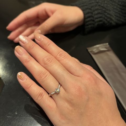いくつになってもつけられるようなシンプルなデザインを希望していたので、思い通りのものが出来てとても嬉しいです。カラーやデザイン、ストーンの付け方などかなり迷いましたが、店員さんの助言も色々頂きながら決めることが出来、自信を持って作成に取り掛かることが出来ました。