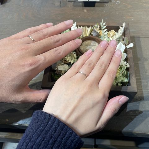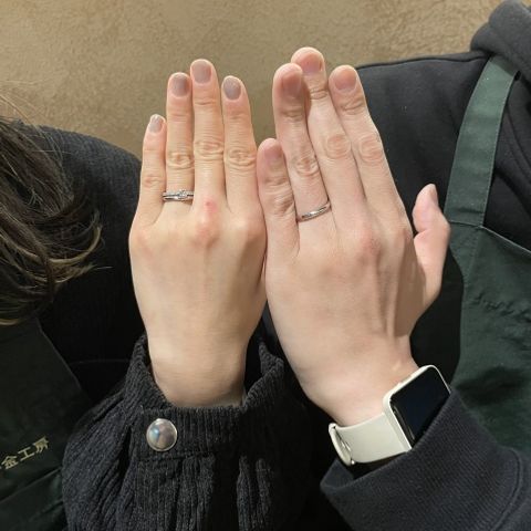 仕事上、手指消毒を頻繁に行うので、自分の肌に合うものと価格帯が高すぎないものを選びました。 また、お互いにこだわりが強くあったので、全く同じ形ではなく、少しデザインを変えることができるのは、ここの店舗の魅力の1つであると思います