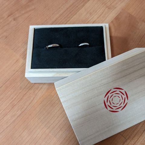 指輪の材料種類・色味・強度について、すごく丁寧に説明していただき、じっくり悩んでじっくりえらんできめるこもができました!デザインや石の配置なども、2人で考えながら作ることができて楽しかったです。自分たちはプラチナ95で作りました!