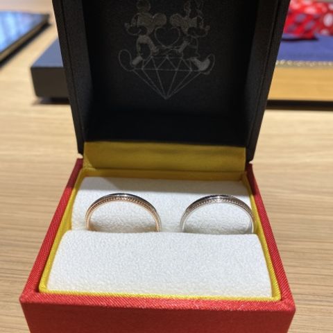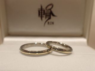 シンプルかつそれぞれの好みのカラーリングで仕上げることが出来ました。今回は男性をイエローゴールドで、女性をピンクゴールドで作りました。作成後につけていてとても高級感を感じる事ができ見た目も満足しています。