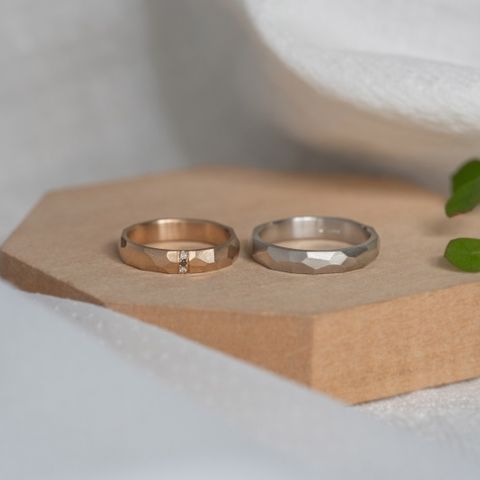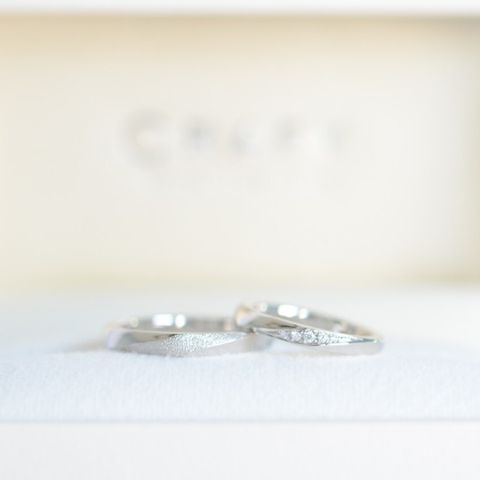 デザインは2人が気に入った加工を組み合わせました。職人さんの技術がたくさん詰め込まれていて、異なる質感や光の反射を楽しめます。 たくさんの材質や加工から選び、店員さんとデザインを決めていったので、どこにも売っていない特別感に満足しています!