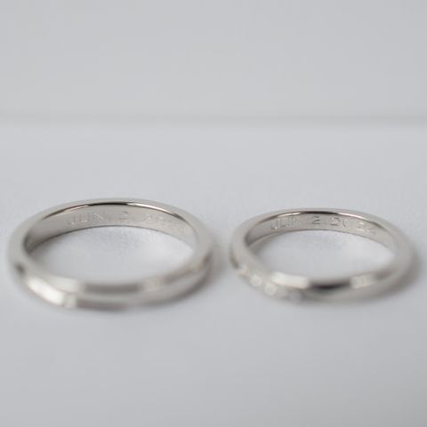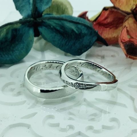 一生の記念になるものなので、自分たちの想いを詰め込んだ指輪にしたいとセミオーダーの指輪にしました。 エッジやマットの加工などたくさん話し合って決めました。彫刻では直筆の日付や名前を入れて、世界に一つだけの指輪ができました。