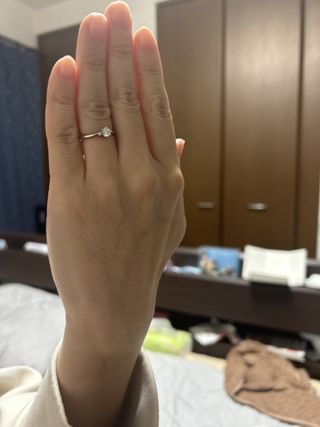 シンプルなデザインであり、中心のダイヤを際立足せることができる指輪で彼女と共に即決で決めました。 また、一生に一度の機会なのでダイヤも大きい物を選ばせて頂きましたが、完成品を見てやはり大きいダイヤにしてよかったと思っております。 また、指への付け心地も非常に良く、大変満足しております。