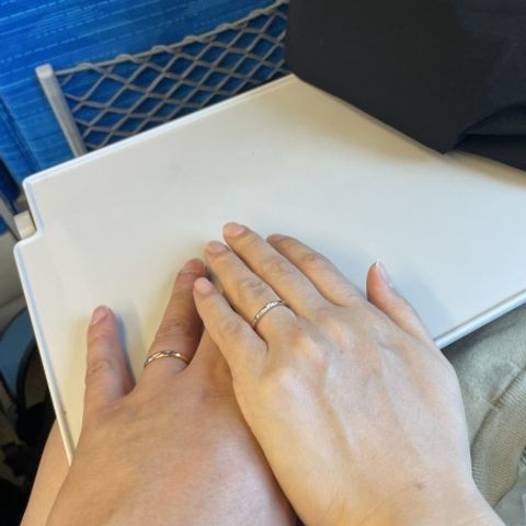 もともとキラキラしていない指輪を探していて、お店をいくつかまわっても惹かれる指輪に出会えませんでした。SNSでmina.jewelryの指輪を見てとてもかわいい、理想の指輪だ!と思いました。 波ひねりの上下で仕上げが異なりひねりがより強調されているところがお気に入りです。キラキラしすぎておらず飽きずに長く着けることが出来ます。夫婦で若干仕上げを変えてそれぞれの個性を出せた指輪ができました。