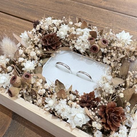 私たちらしいオリジナルが良かったので、既存のものではなく、手作りにこだわりました。中でも、飽きのこないものにしたかったので、装飾とかは考えてなかったのですが、実際はミルグレインとお互いの誕生石と、手書きの刻印までオーダーしていました。 完成まではやり過ぎたかなと不安もありましたが、出来上がりをみたら期待以上で、とっても満足しています。