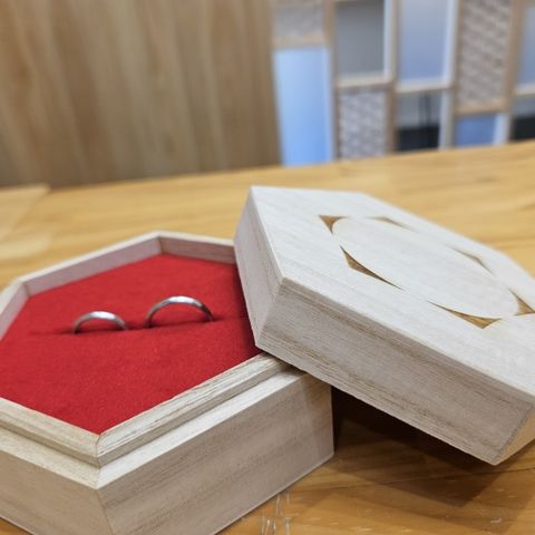 ひとつひとつ職人が手作りしているので全く同じ形の指輪がなく世界にまたとない指輪となっております。また、指輪の入れ物も木箱で和風なので個人的にも和風が好きな方であればオススメできるポイントでもあります。